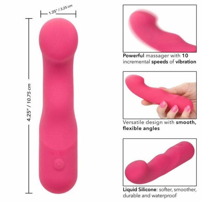 El Curvy Liquid Silicone Pixies está diseñado para ofrecer una sensación de sacudida de rodilla a sus puntos de placer favoritos. La punta en ángulo flexible, el diseño de doble cara y las 10 velocidades emocionantes de vibraciones hacen que este sea el compañero de viaje perfecto. El masajeador curvo se ajusta en su mano para permitirle entregar tentalización precisa y emocionar con vibraciones contorneadas. Obtenga juguetón con cada aumento de las 10 velocidades incrementales de vibración con el botón de control de fácil toque. Control sin esfuerzo El placer puro con un botón de silicona de fácil toque y mantenga presionada durante 3 segundos para encenderse o desactivarse. La silicona líquida ultra-plush y la punta única flexible son excelentes para explorar puntos dulces sensuales y puntos de placer íntimos con facilidad. Con una forma suave y una superficie flexible, podrá disfrutar de vibraciones emocionantes desde cualquier ángulo que desee. Use el control suave de un solo botón para disfrutar de hasta 110 minutos de placer vibrante. Cargue su pasión en solo 1,5 horas conectando el cable USB proporcionado al puerto de carga de auto-selección en la base del masajeador. El tamaño discreto del masajeador delgado lo convierte en el compañero de viaje perfecto, lo que te permite adoptar el placer radiante donde te lleven tus fantasías. 10 velocidades incrementales de vibración