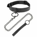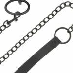La fuerte cadena negra se anexa con un broche tipo langosta a un aro seguro que tiene el collar y se combina con un asa cómoda.