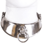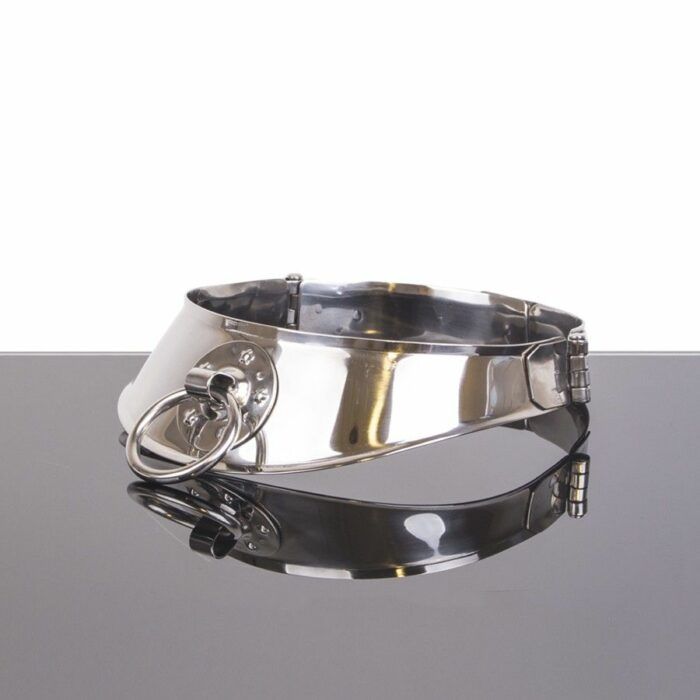 Este collar de sumisión de acero inoxidable puede ser usado como símbolo de sumisión o como un magnífico accesorio para llevar en disfracex u otros juegos fetiches. Es sexy y versátil. Este collar cromado está diseñado especialmente para hombres con bordes curvados.