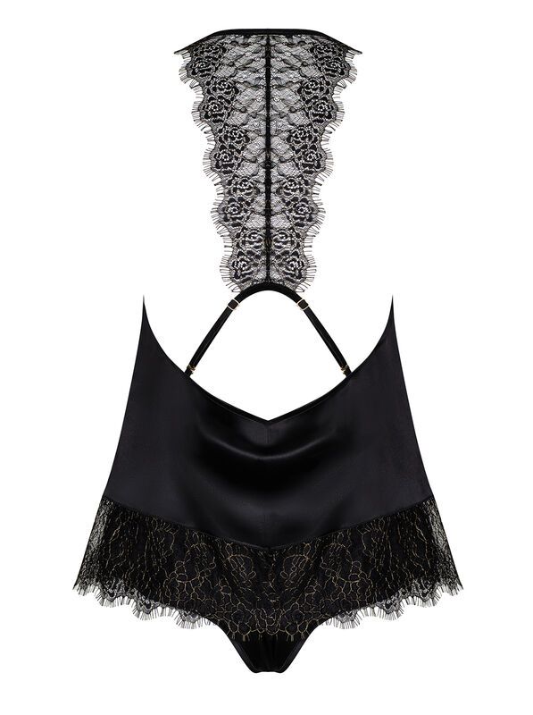 ¡Momentos llenos de placer son algo que encontrarás en el set Agatya! Intrigante satén negro en el que te derretirás de placer te hará recordar las noches que pasabas con tu amada con un sonrojo en la cara.