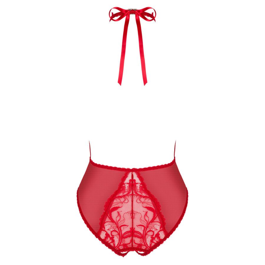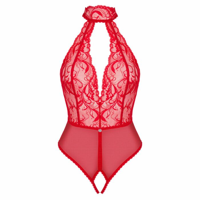 Seduce con un corte sexy y deleita con la elegancia del encaje: este teddy de la colección Dagmarie es definitivamente imprescindible para disfrutar del placer en el dormitorio. La entrepierna abierta te dará una sensación picante, y el corte chic te dará un look hermoso y femenino. ¿Te gustaría enamorarte del rojo?