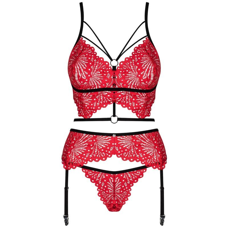 ¡Redescubre el poder del rojo con el set Mettia extremadamente caliente! Envuelve tu cuerpo en la delicadeza de sus encajes y deja que las tentadoras correas enfaticen tus curvas. ¡Oh, esta noche calurosa permanecerá en tu memoria durante mucho tiempo!