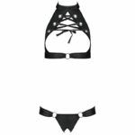Malwia es un conjunto formado por un top de cuero sujeta al cuello con aros decorativo y cordones, que enfatiza y realza el busto y el tanga con un encantador recorte. Las juntas decorativas en forma de círculos, dan un encanto peculiar.