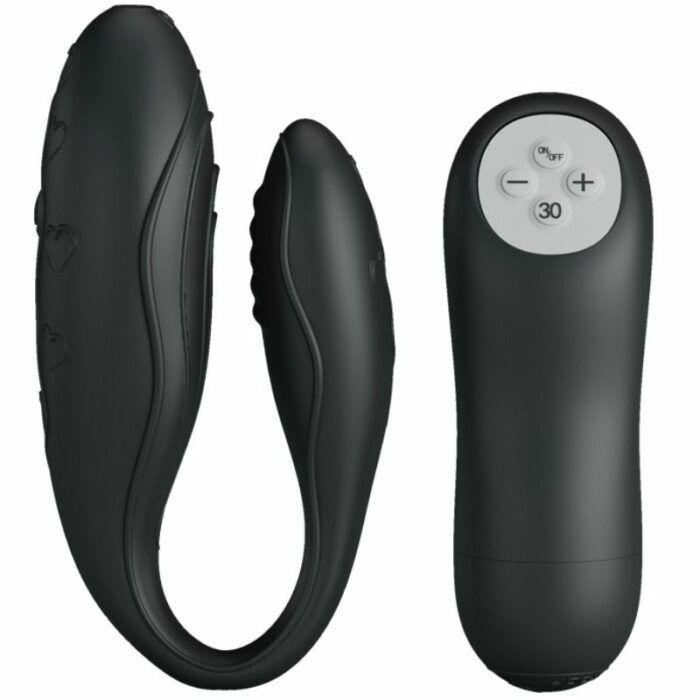 - Este vibrador ergonómico en forma de U con mando a distancia, es ideal para utilizar en pareja , con distintos modos de pulsación que hacen un total de 30 funciones de vibración, dos motores independientes y totalmente flexible.