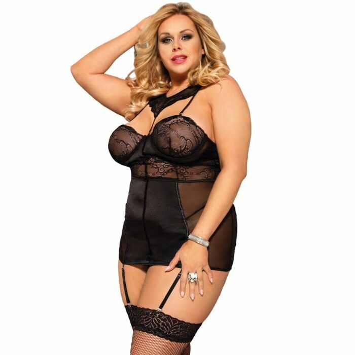 Queen Lingerie Chemise Con Liguero Negro Talla Plus
